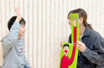 提示される教材を見て、一か所に座り続けられるように練習をします。指名されたら前に出てきて答える、指名されないときは静かに見ているなど、集団参加の仕方を学びます。