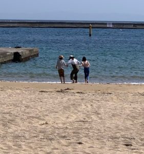 そして昼食後は須磨浦海岸へ‥。水はまだ冷たかったですが、スタッフと一緒にキャッキャと言いながら楽しみました♪