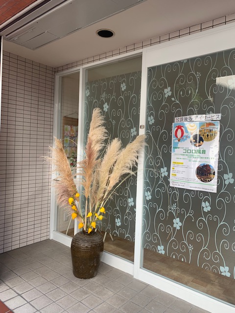 教室の玄関も秋らしく装飾し、今回作ったカードと一緒にみなさんをお出迎え🍂