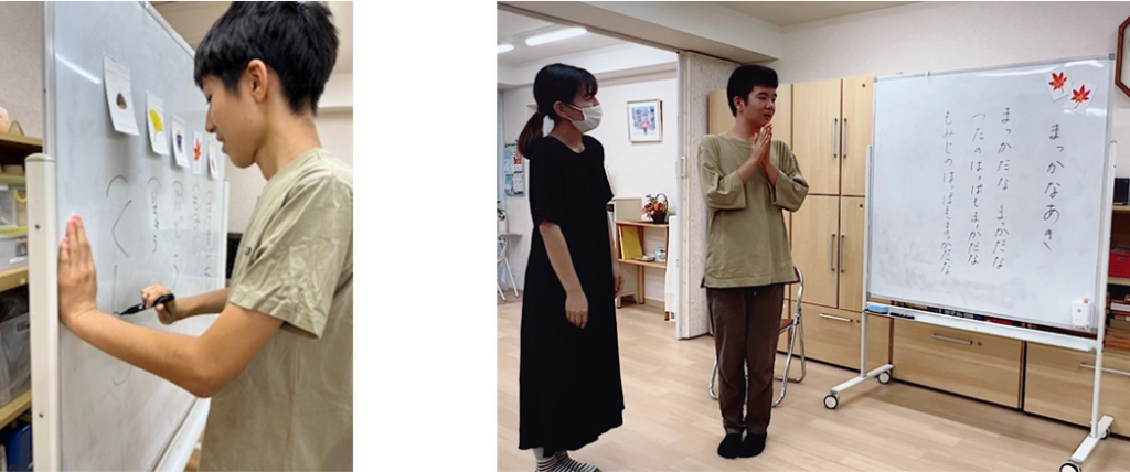 秋に紅葉する植物、秋の食べ物について学習し、最後は皆で「まっかな秋」を歌いました♬
