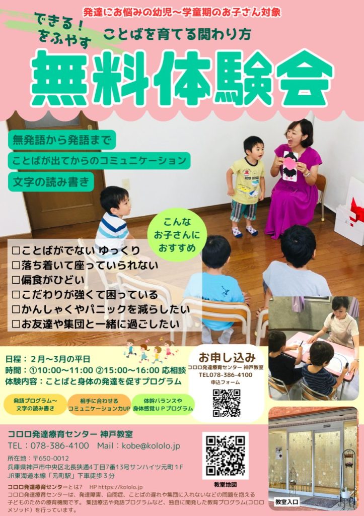 コロロ発達療育センター コロロ神戸教室にて無料体験会を開催します。