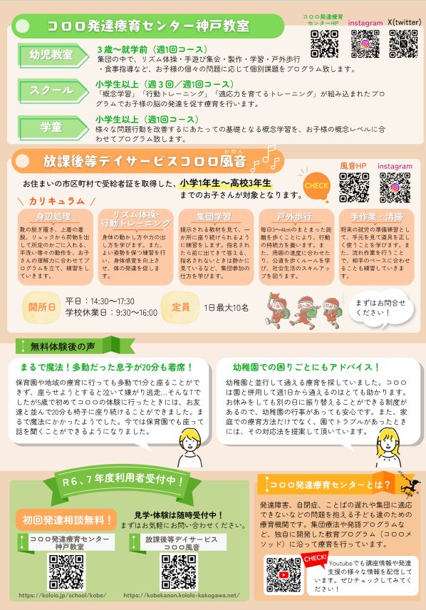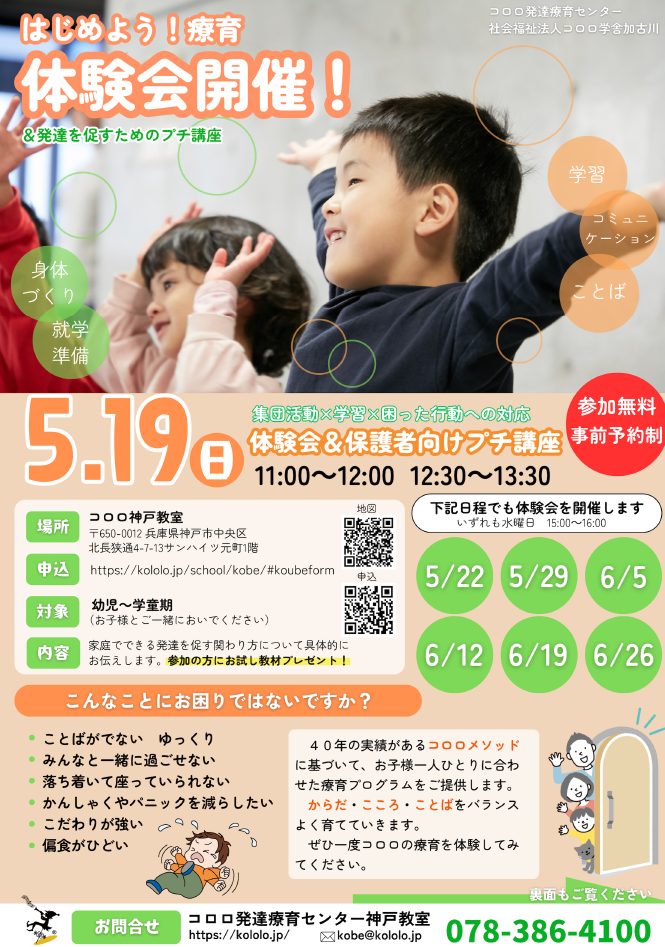 コロロ発達療育センター神戸教室にて無料体験会を開催いたします。