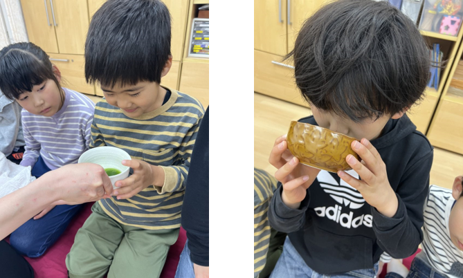 苦いお抹茶にお茶菓子…皆さん口にする事が出来るかな?