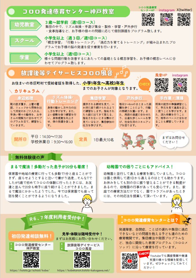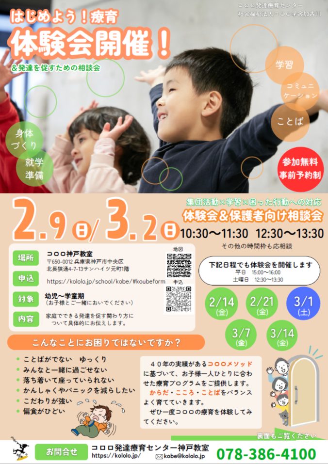 コロロ発達療育センター神戸教室にて無料体験会を開催いたします。